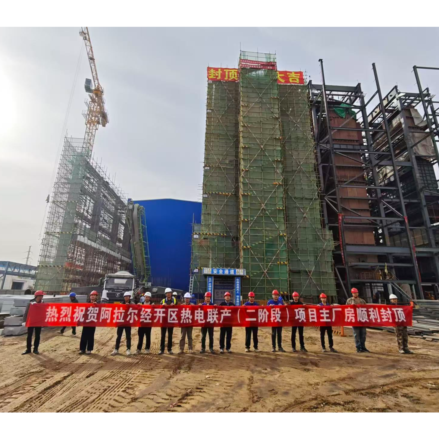 新疆阿拉爾經(jīng)濟(jì)技術(shù)開發(fā)區(qū)熱電聯(lián)產(chǎn)(二階段)項(xiàng)目主廠房順利封頂